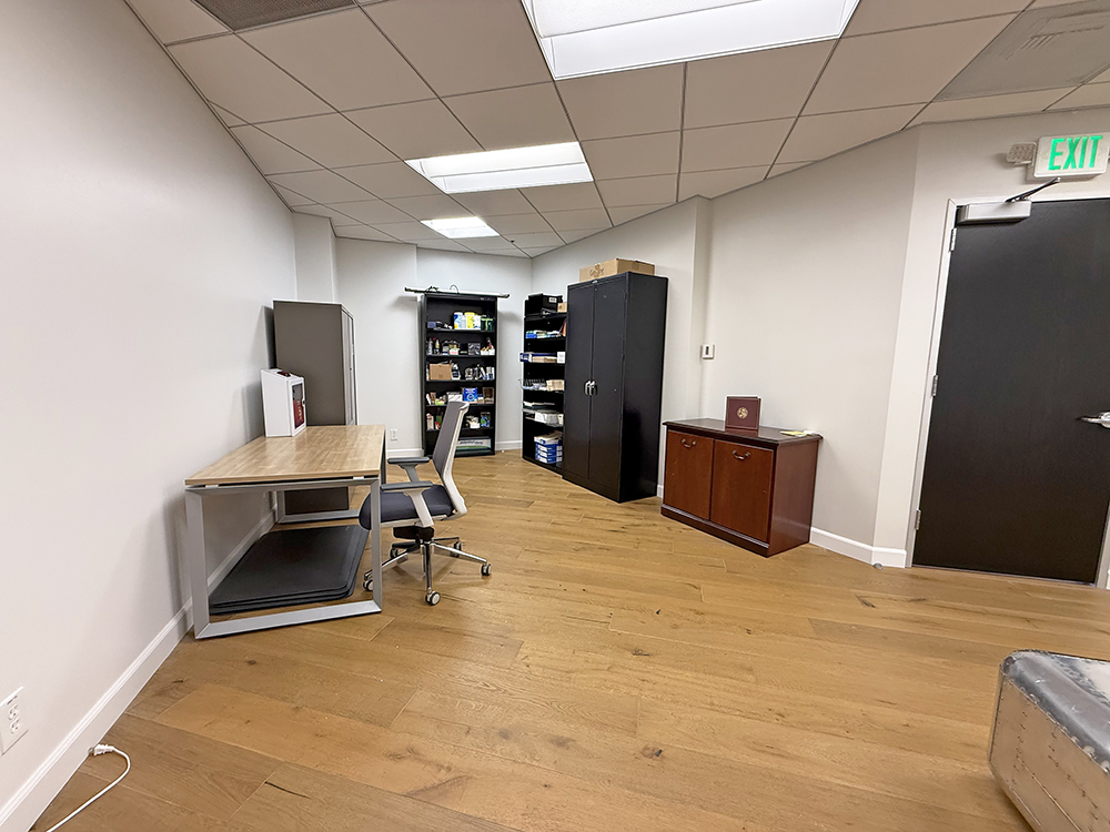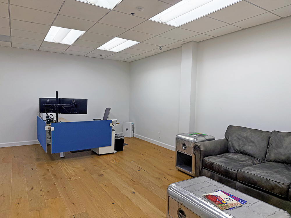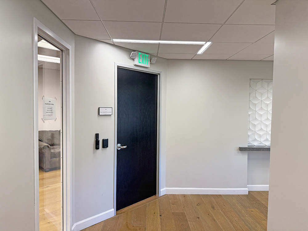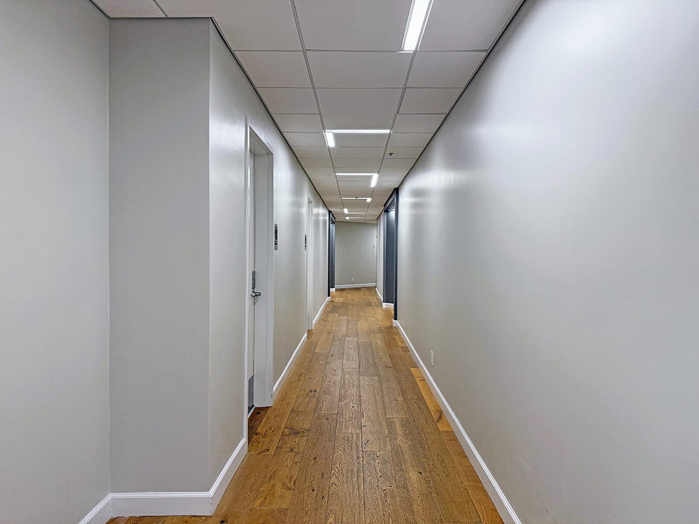 Recently updated shared corridor, restrooms, and private office