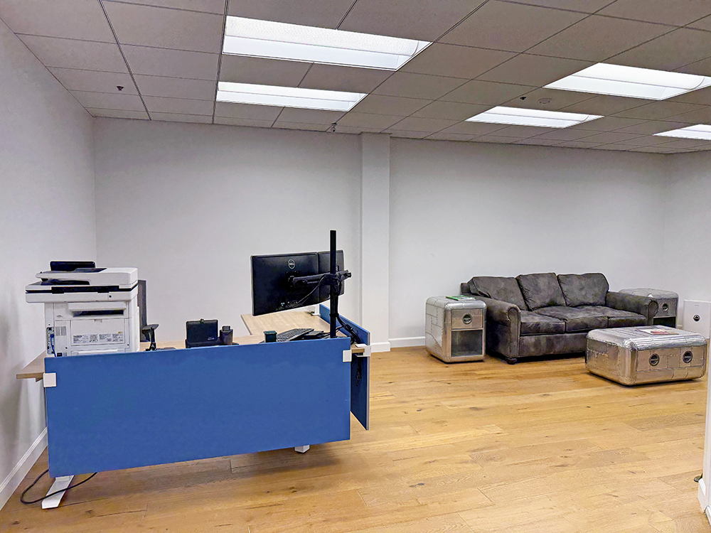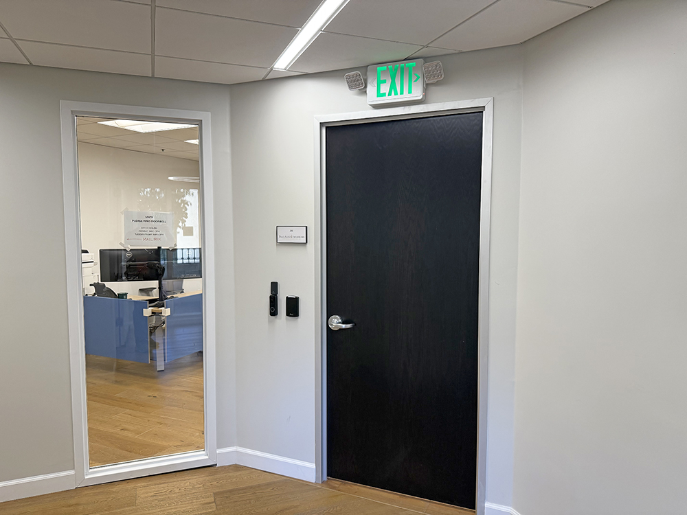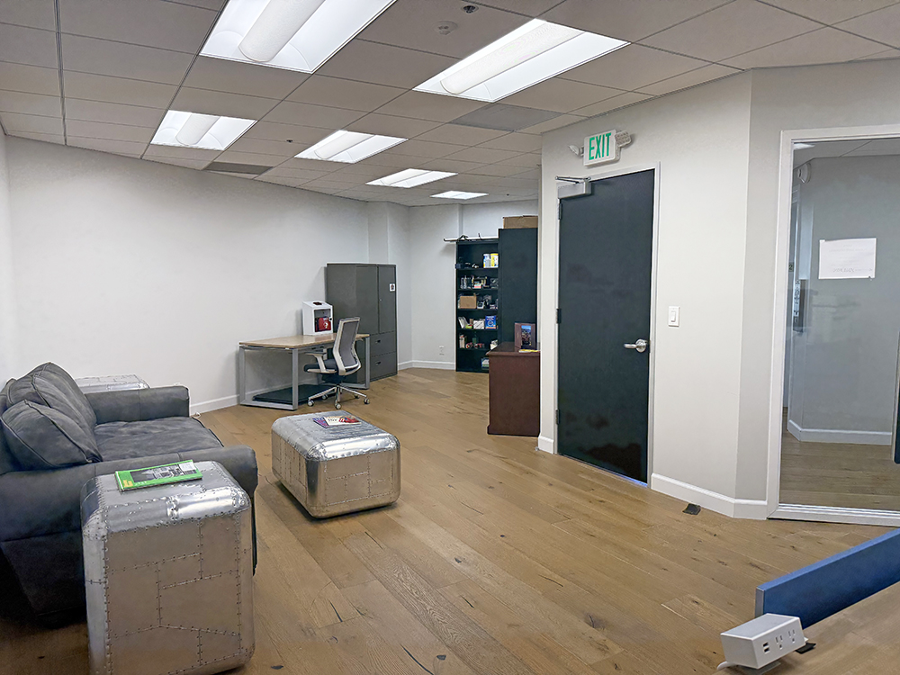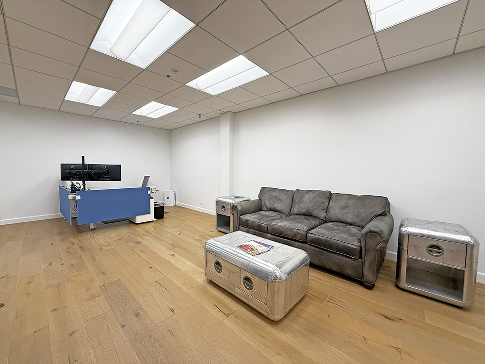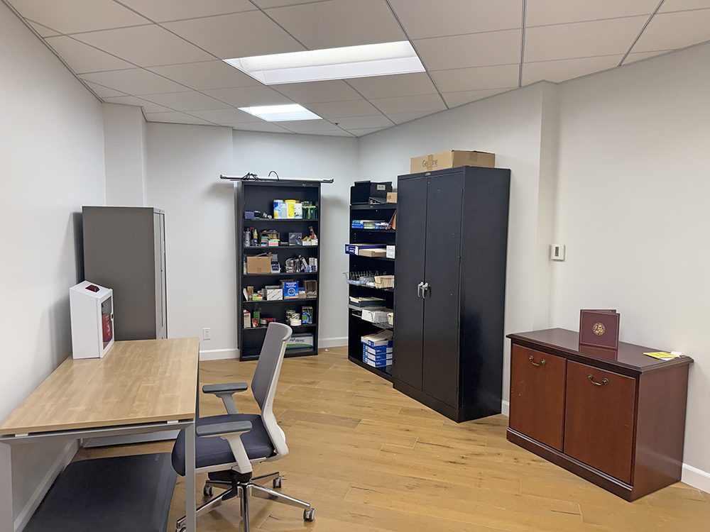 Recently updated shared corridor, restrooms, and private office